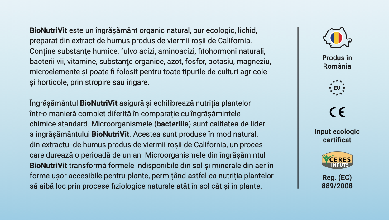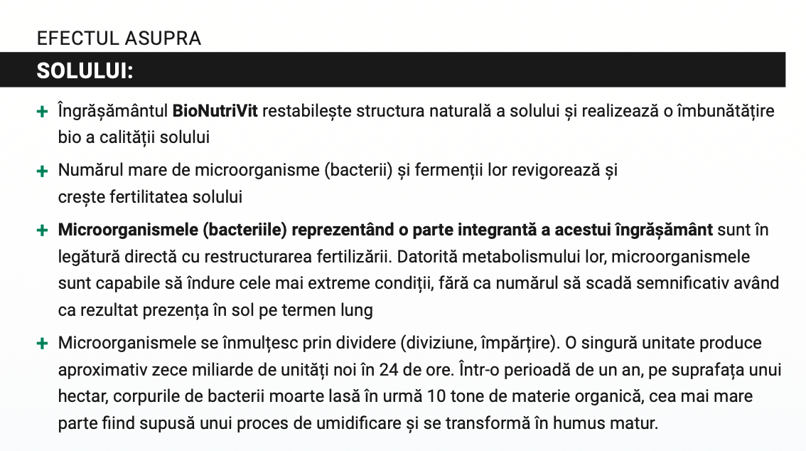 elementelor și substanţelor minerale, folosirea îngrăşământului organic natural BioNutriVit