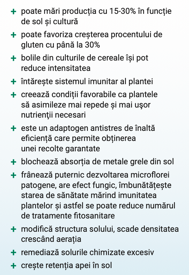 Datorită prezenței biostimulatorilor ce îl conţine, microflorei biologice, majorităţii micro-