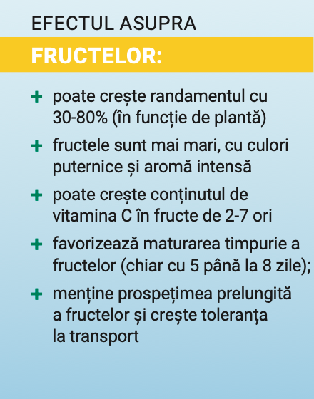 coacerea fructului și a tuberculilor, îmbunătățește starea generală a plantelor, accelerează